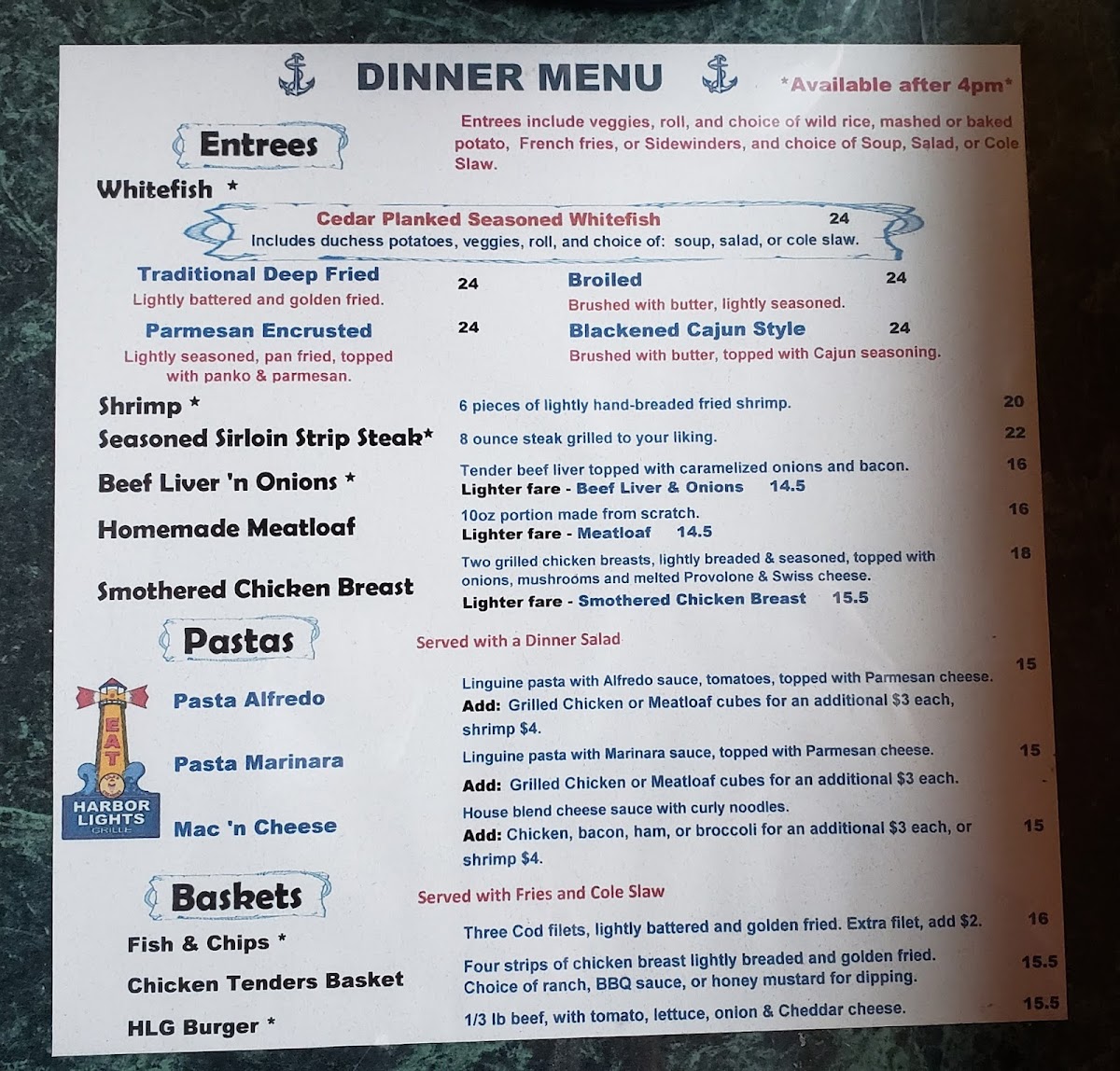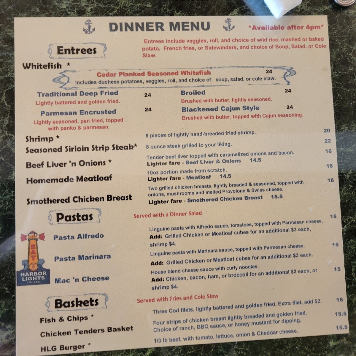 Welcome to Harbor Lights Grille, nestled perfectly along Lake Paradise in Carp Lake, Michigan. This charming eatery boasts a delightful menu that caters to all tastes, offering everything from tantalizing pastas like the creamy Pasta Alfredo to the satisfying Mac 'n Cheese. Customers rave about the HLG Burger and Fish & Chips baskets, showcasing their commitment to fresh, high-quality ingredients.